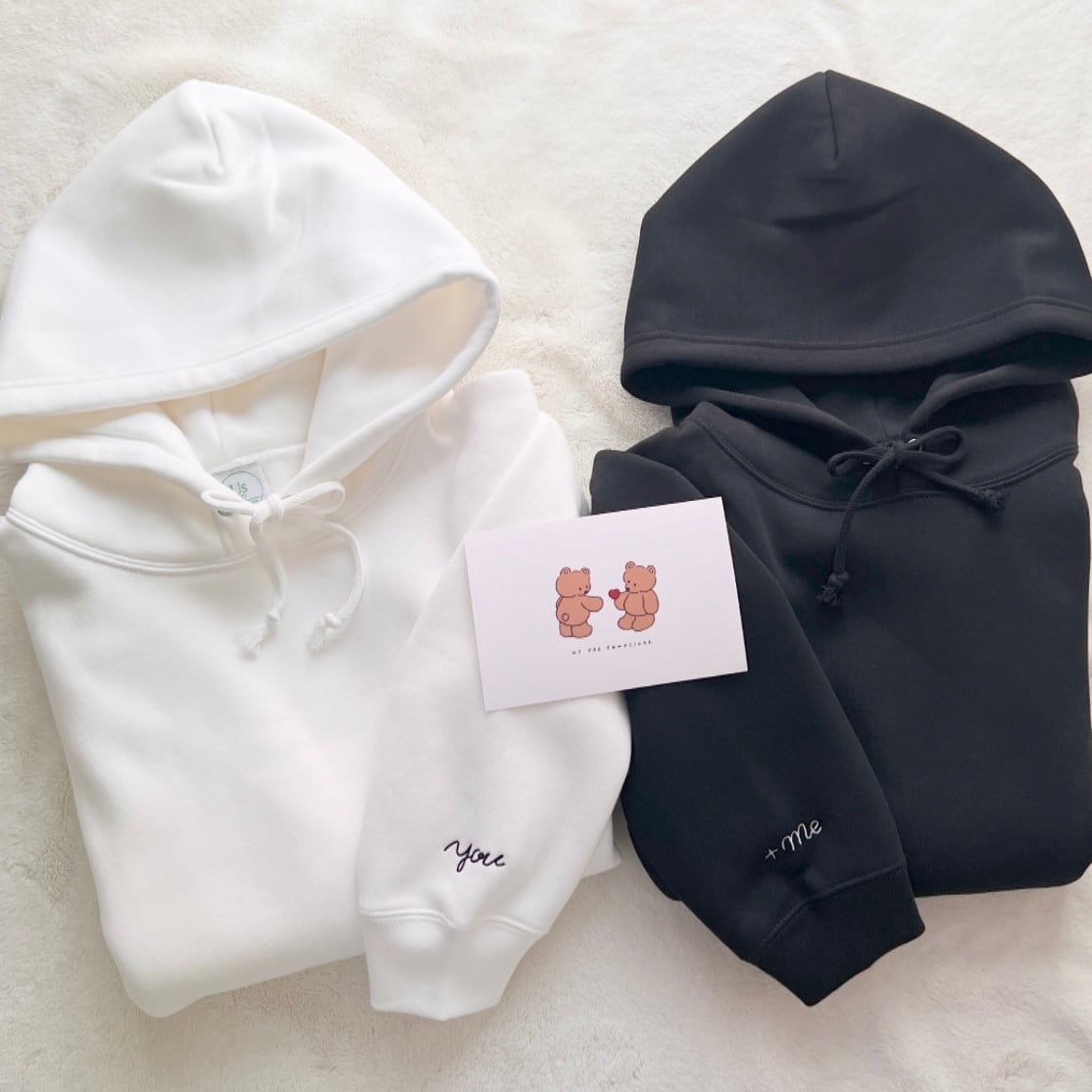袖のみに並んで繋がるyou+meロゴが入った