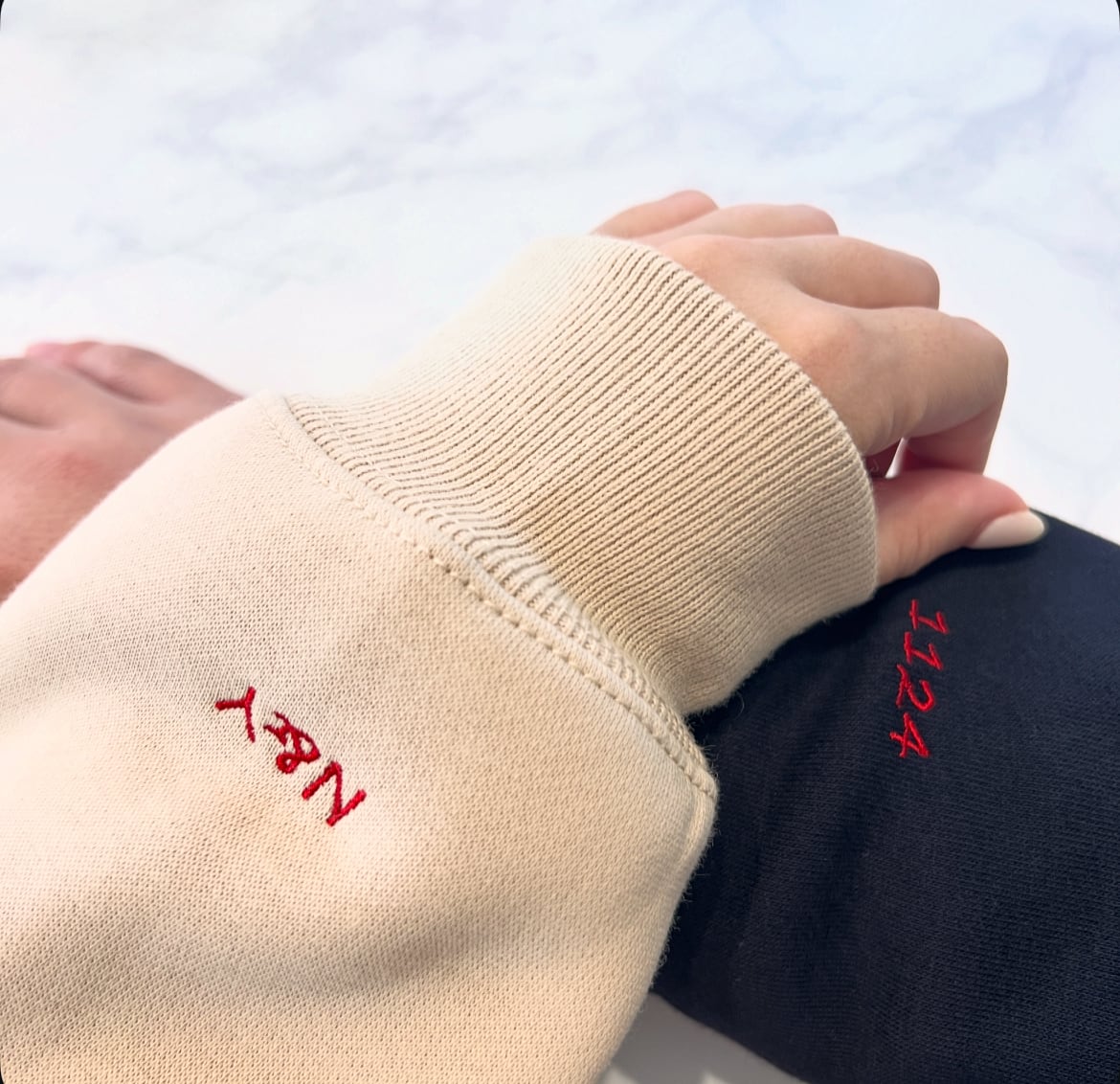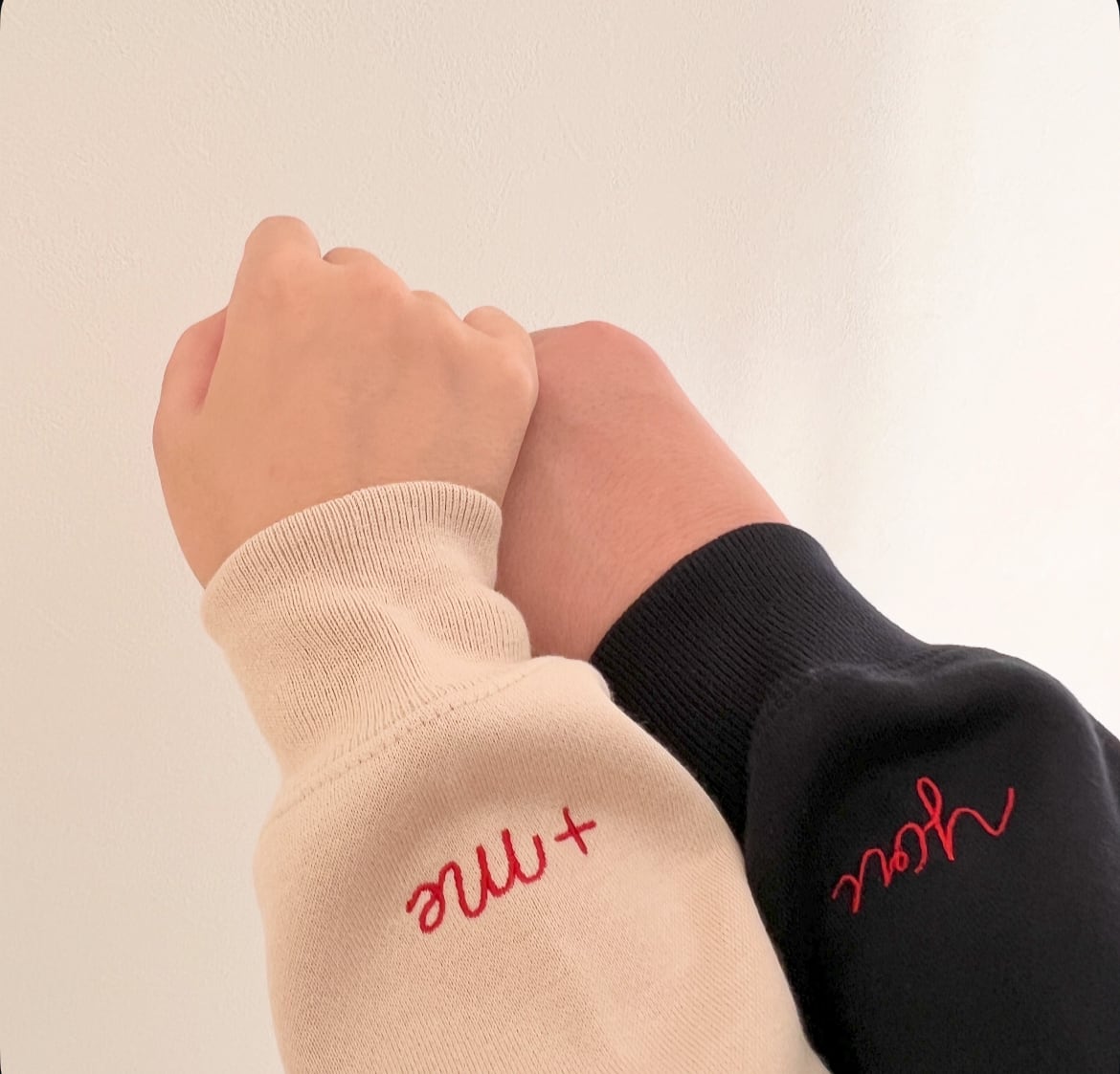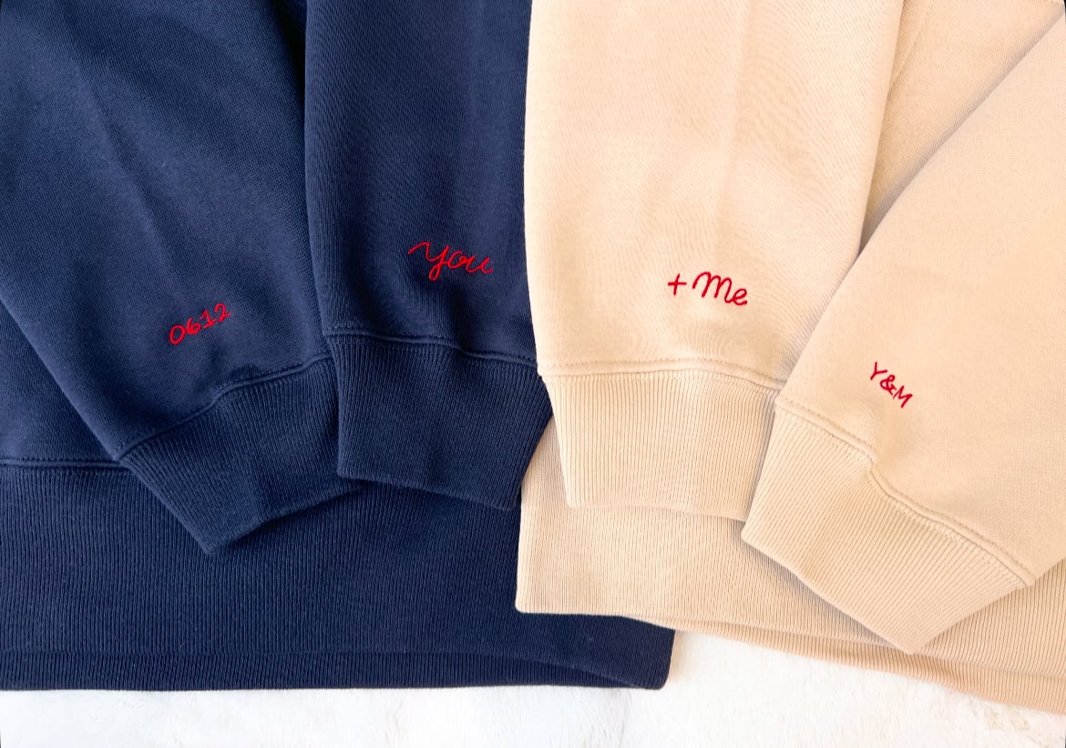 袖には並んで繋がるyou、+meの刺繍が入っております。