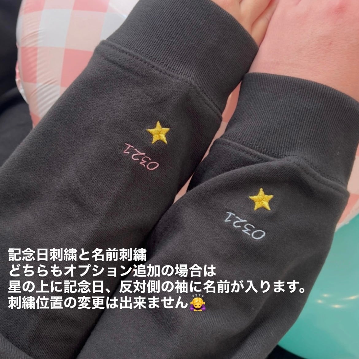 どちらも刺繍の場合、星の刺繍の上に記念日