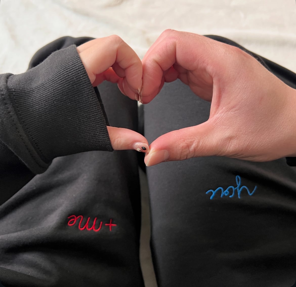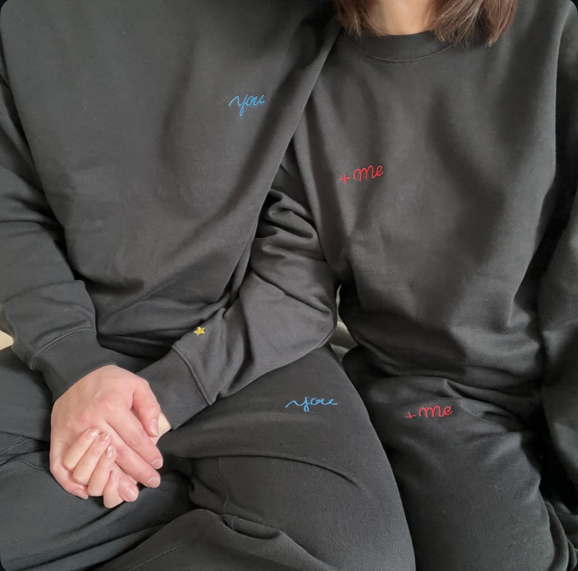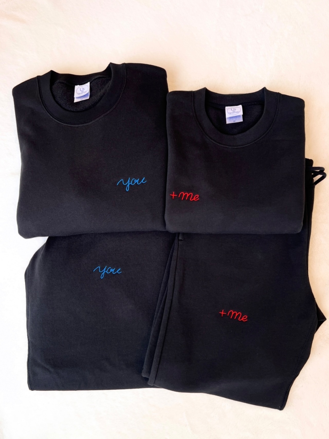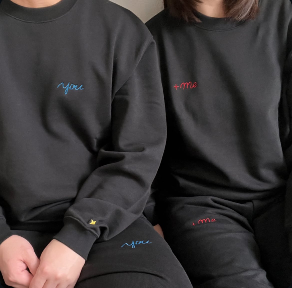 別売りのyou+meスウェット(ブルー×レッド刺繍)と合わせればセットアップとしてご利用頂けます。