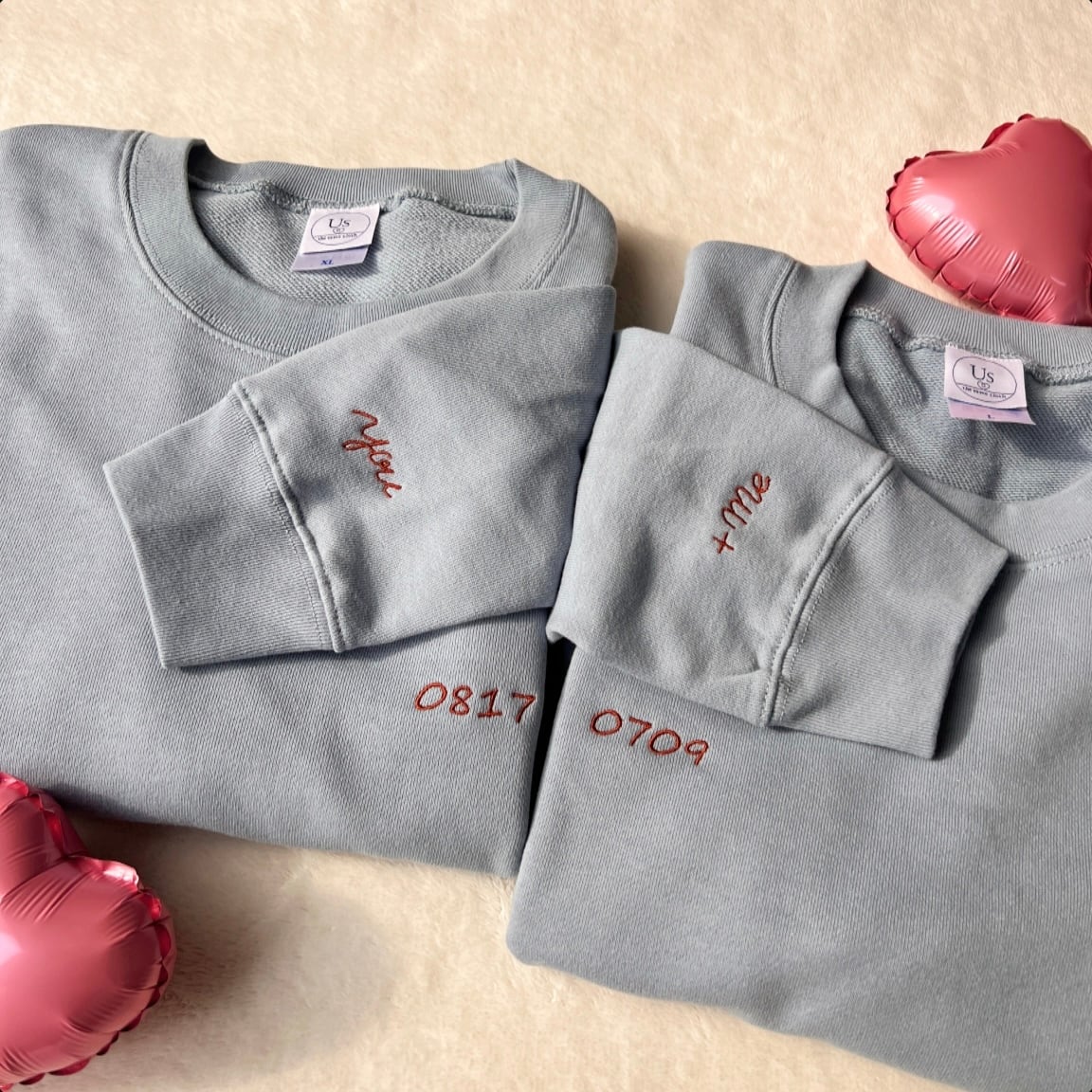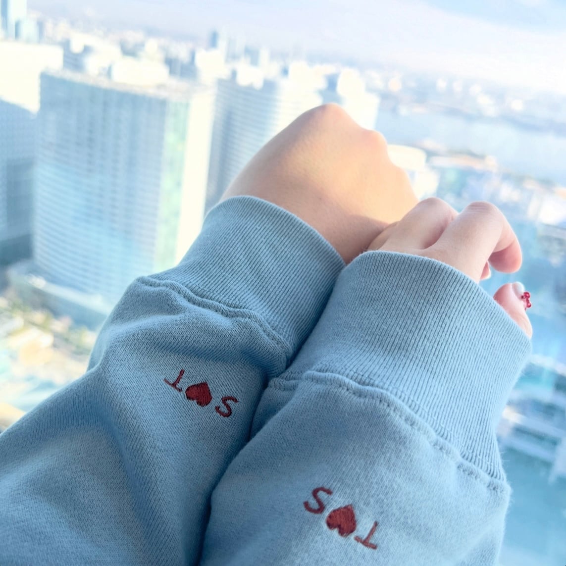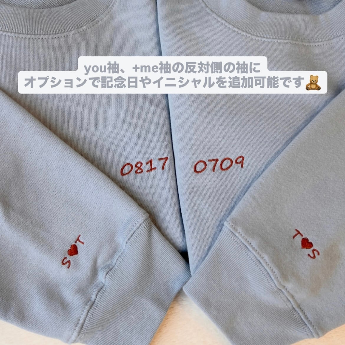 袖には並んで繋がるyou+meの刺繍が入っております。