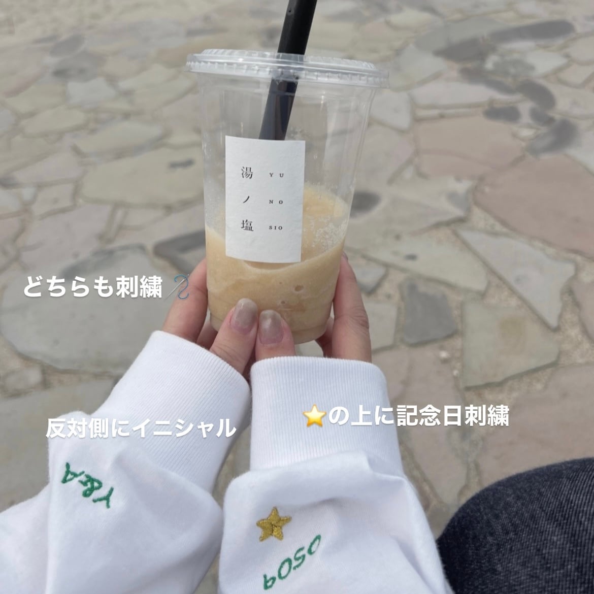 星の刺繍が入った袖の反対側の袖におふたりの大切な記念日やお名前を刺繍致します。