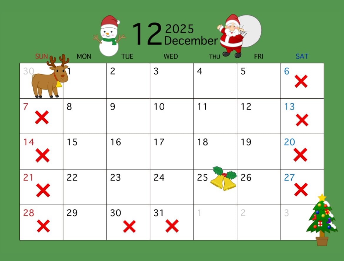 12月はクリスマス繁忙期の為