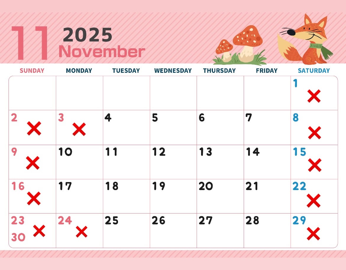 (土曜日、日曜日、祝日は休業日です。)